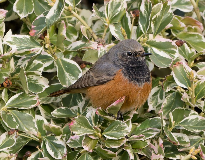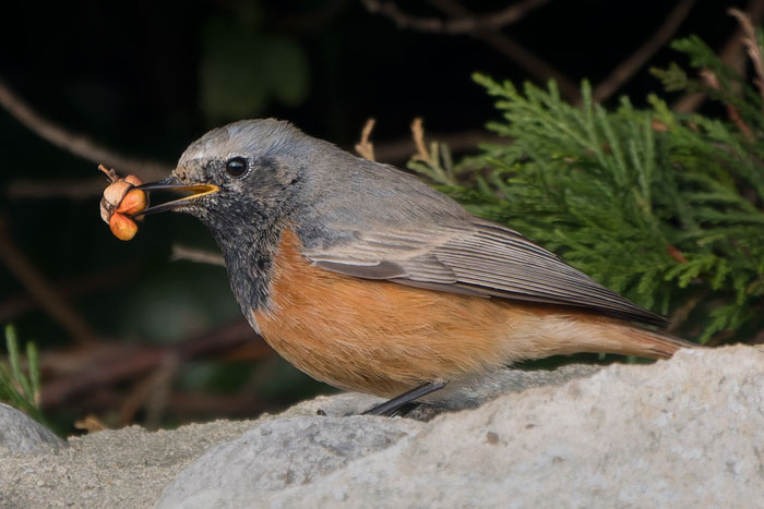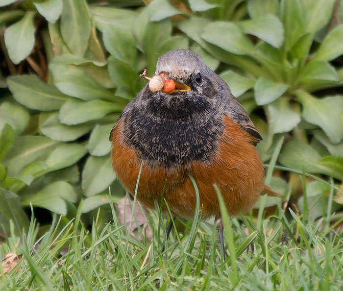 | Eastern Black Redstart, Sheringham, Norfolk, 8th January 2026. Feeding well on Griselinia berries, and enjoying some offered live mealworms. |