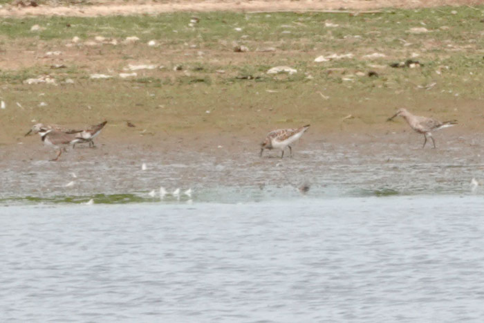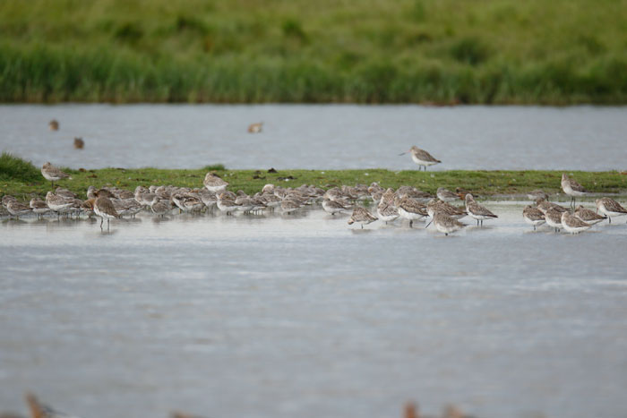 | Bar-tailed Godwits and Knot, Simmonds' Scrape, Cley, 20th June 2019. |