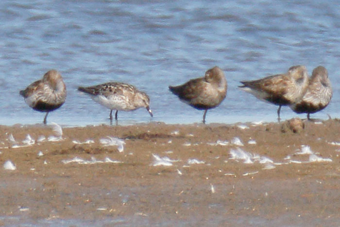 | Semipalmated Sandpiper, with Dunlins, Titchwell, Norfolk, 22nd July 2019. |