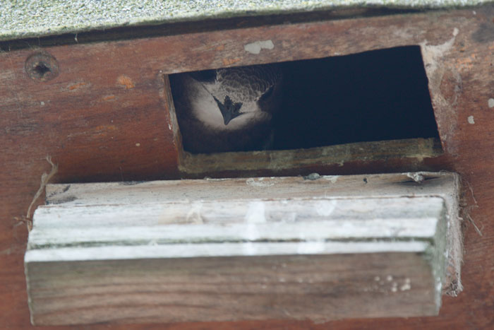 | Swifts with newly hatched Swiftlets, Cley, 14th June 2019. Box 3 have hatched! For the full on-going story of our small colony of Swifts, follow Sue's www.cleyswifts.blogspot.com |