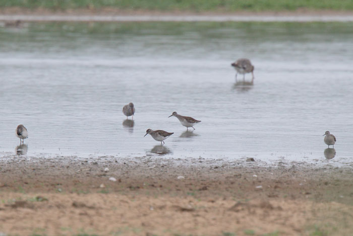| Wood Sandpipers, Cley, 28th July 2019. The dull and gloomy weather produced a good day at Cley which included over 40 Wood Sandpipers, 16 Curlew Sandpipers, 2 Little Stints, Quail, Spoonbill & Osprey and the first Pied Flycatchers of the autumn. |