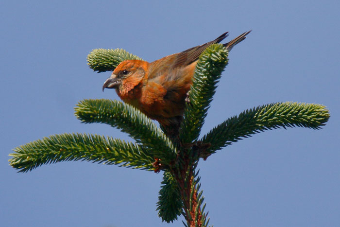 | Common Crossbill, Scatsta Farm, Sullom Voe, Shetland, 9th July 2019. |